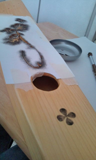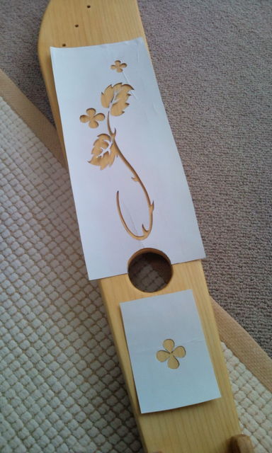 次は、図案をカッターで切り出して表板にステンシルをします。
