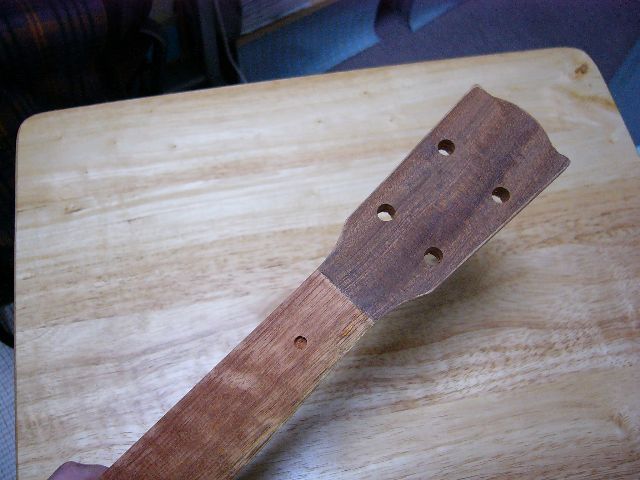 今度はきっちり埋まりました。ってか最初からソレをやってれば確実だったんでせうかねえ~?(笑)ウクレレを弾ける人だったら、きっと後でフレット線を抜いて取替えられるように、タイトボンドを使わないで打つと思うんですけど、まあ、ワタシはまだ弾けないし♪そこまでこだわるよりは、「まずは一本。」を目指せればいいや、と。(笑)←向上心というものがないらしい。