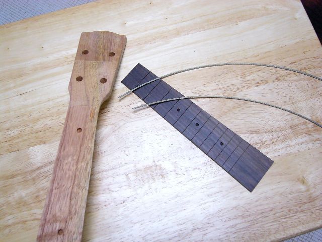 ・いただいたアドバスでは、「先にネック装着してから指板を接着してフレット打つほうが楽」ということですが、正直どうなんだろう・・・?