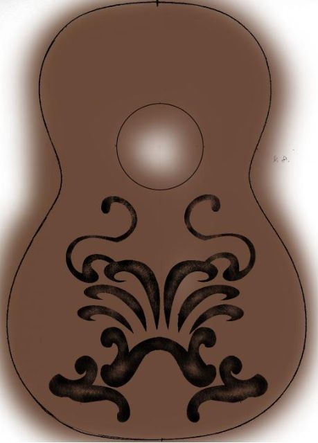 ウクレレを紙の上に置いて、鉛筆で形なぞってスキャニング。ソレをフォトショップで開いていろいろいじってみました。
